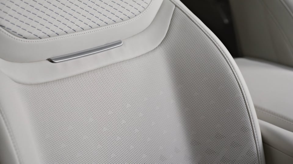 - Subtle details: New duo‑tone Orchid White and Cinder Grey Ultrafabrics™ leather‑free interior features seating with a laser‑crafted pattern and intricate mosaic perforation. It pairs with a new rattan palm veneer in a natural open‑pore finish for a subtle, harmonious look
